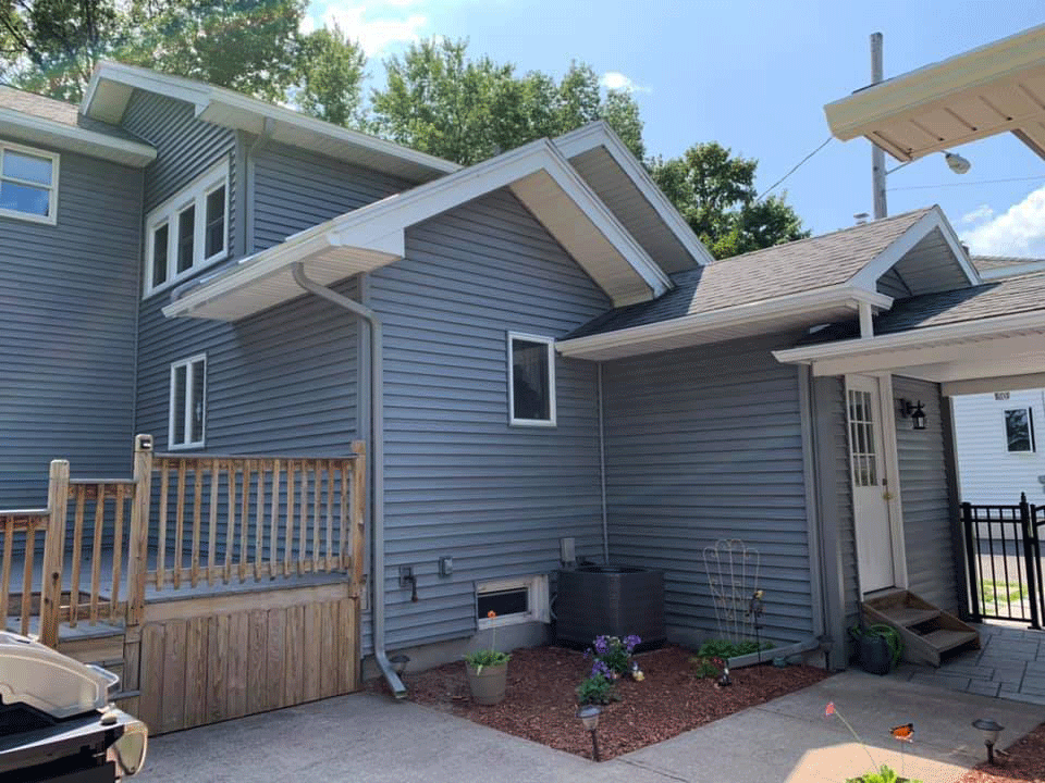 We installed seamless gutters and downspouts to match the home and preserve the new siding, porch, doors, and everything else we installed to “deck” out the home. We use the highest quality materials, and custom build out gutters and downspouts to your home to make sure they not only look great but do their job as well as possible for as long as possible. When we, along with Poly Enterprises, do work on your home it can feel like you have an all new house— without the stress of moving!